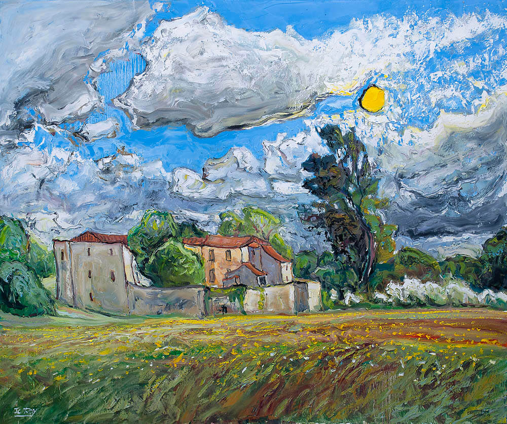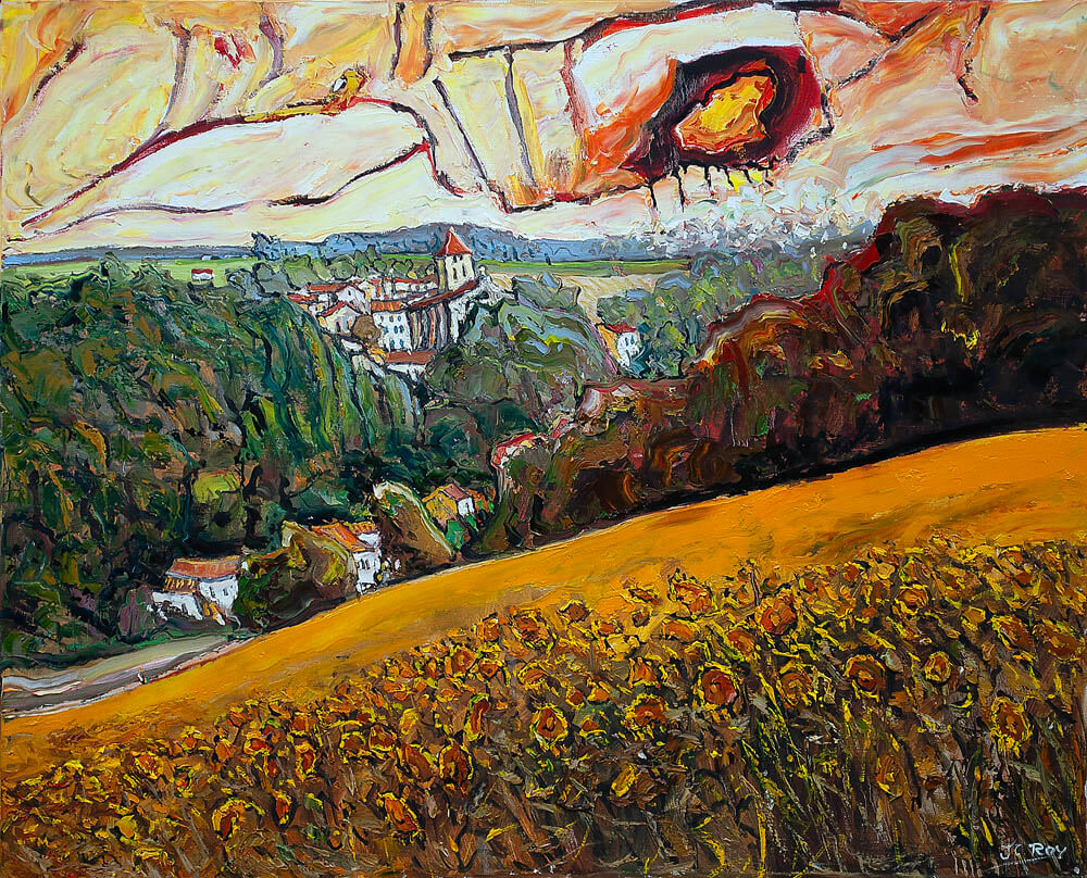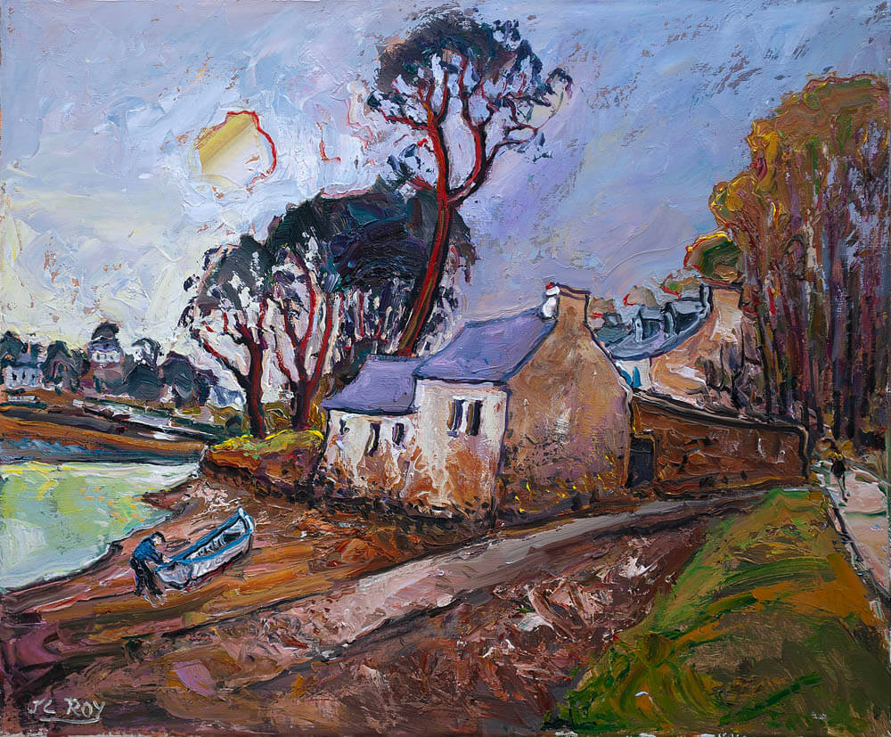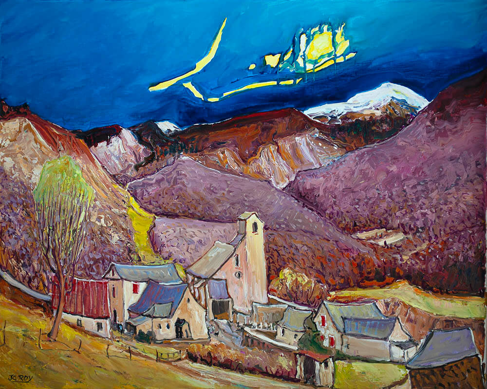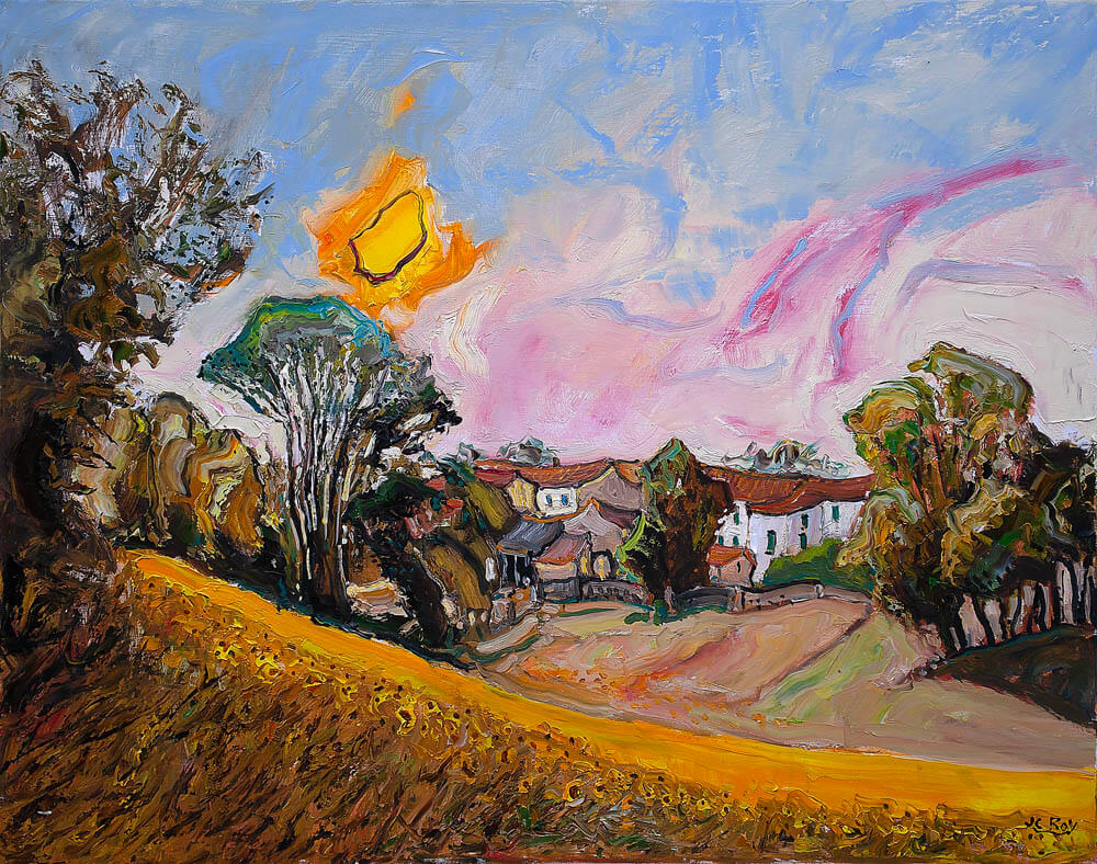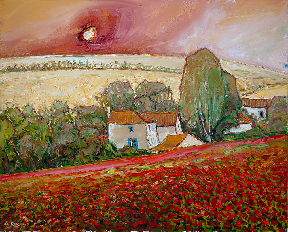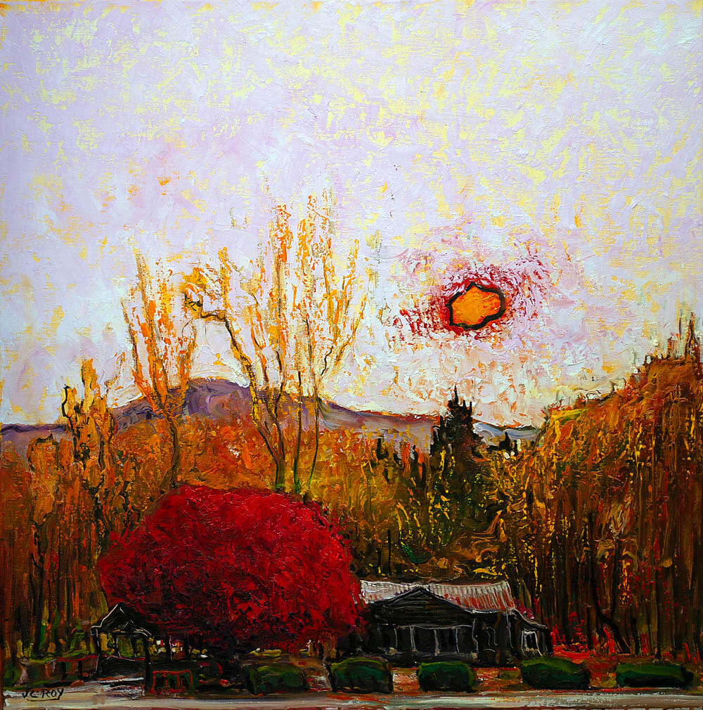 Jean Claude Roy, an "expressionist-colourist," paints primarily in oils with a palette knife. Since the late 1980s, his radiant landscapes have featured a signature sun — initially painted black — that became central to his compositions. For over 25 years, he has divided his time between France and Newfoundland, publishing two books, receiving the Order of Newfoundland and Labrador, and inspiring several award-winning documentaries. In 2002, Roy met Richard Kessler, and since then his work has been proudly represented in the United States by Kessler Collection galleries.