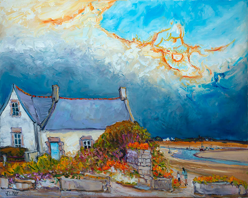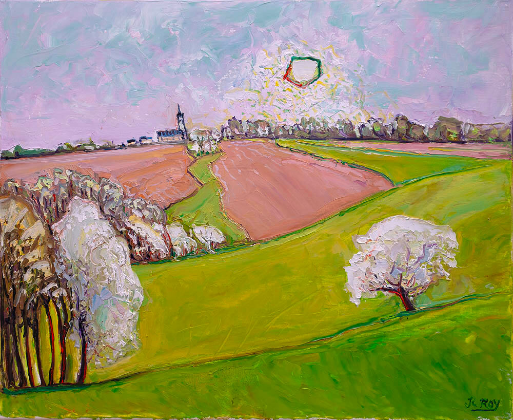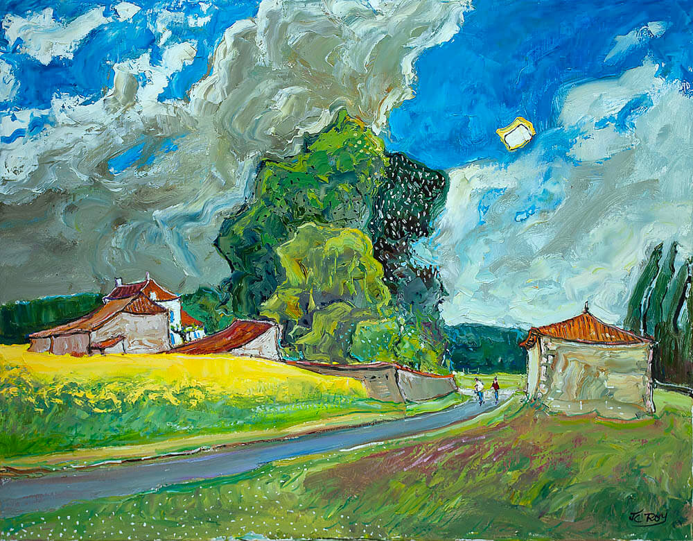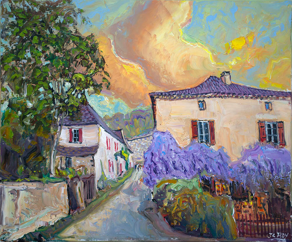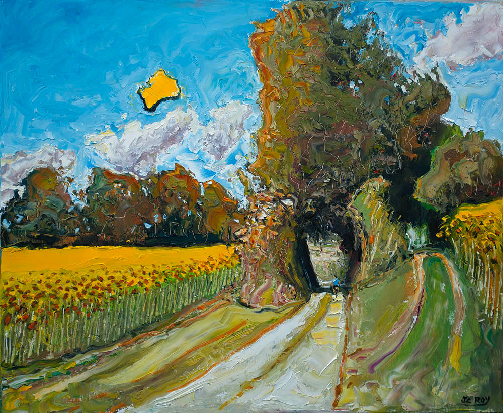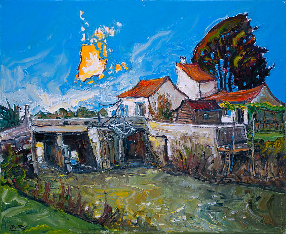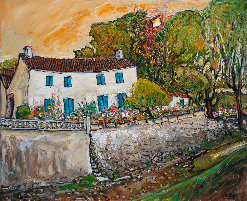 Jean Claude Roy, an "expressionist-colourist," paints primarily in oils with a palette knife. Since the late 1980s, his radiant landscapes have featured a signature sun — initially painted black — that became central to his compositions. For over 25 years, he has divided his time between France and Newfoundland, publishing two books, receiving the Order of Newfoundland and Labrador, and inspiring several award-winning documentaries. In 2002, Roy met Richard Kessler, and since then his work has been proudly represented in the United States by Kessler Collection galleries.