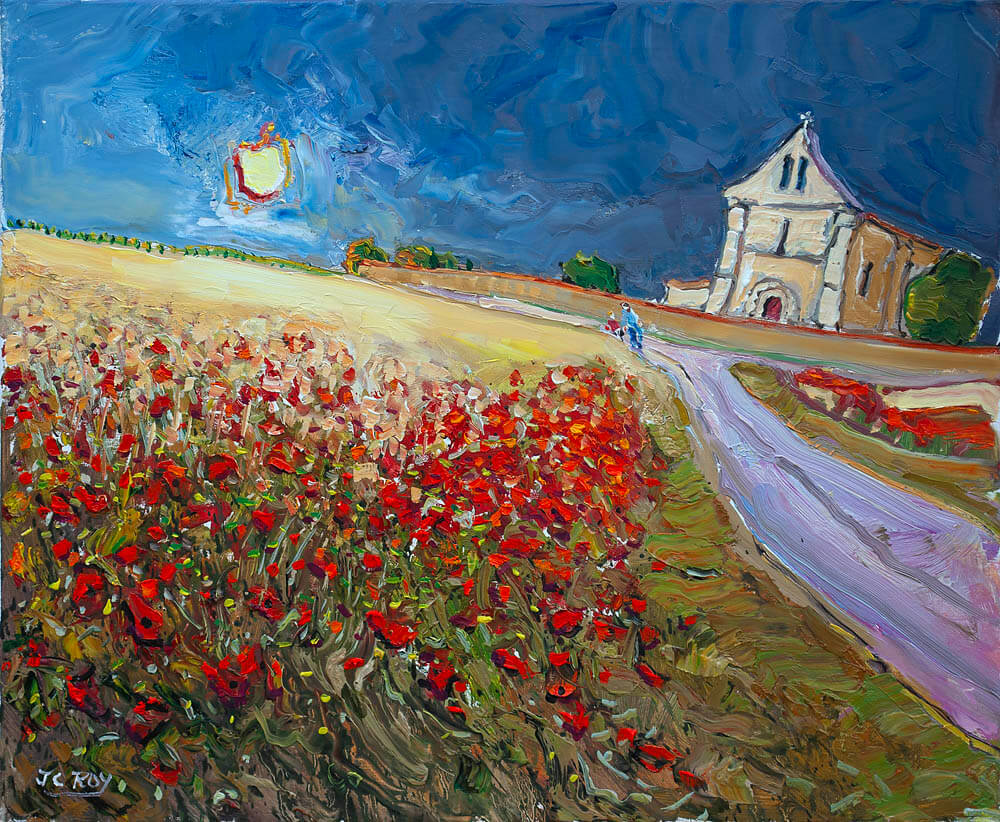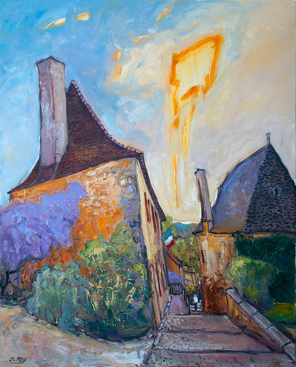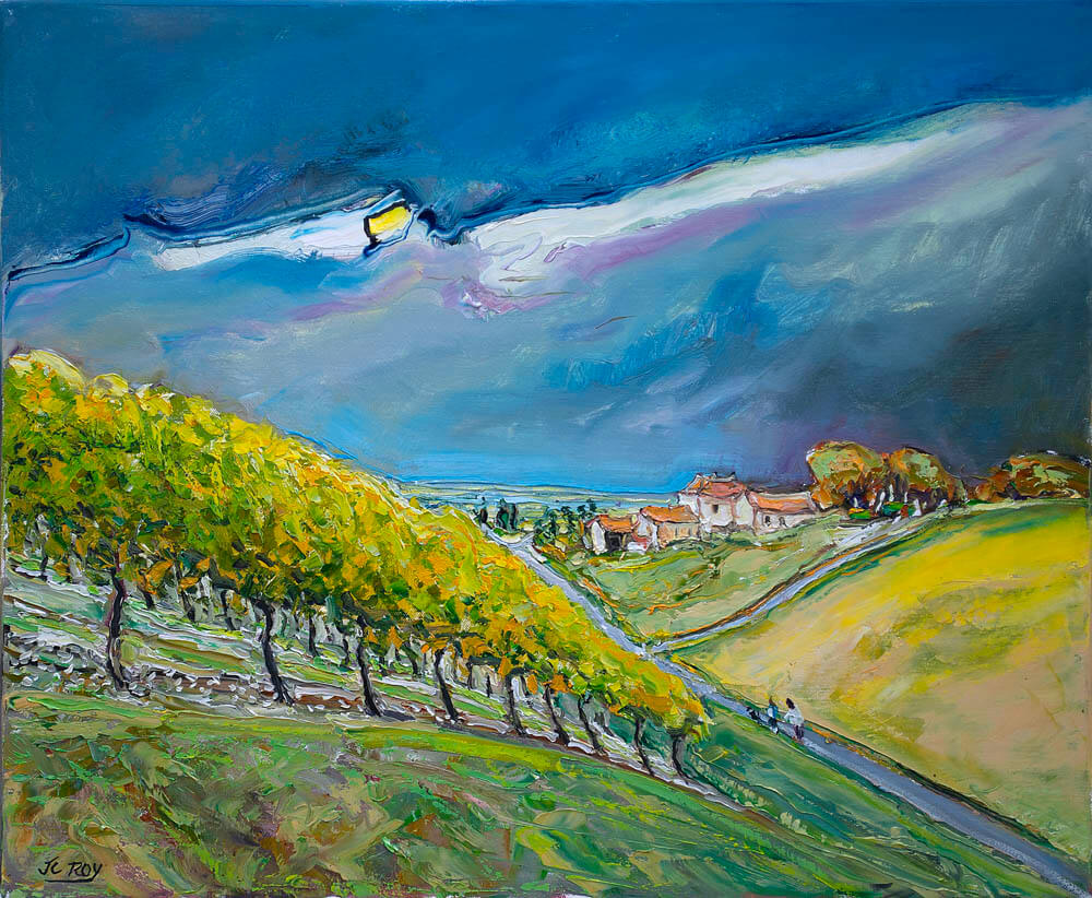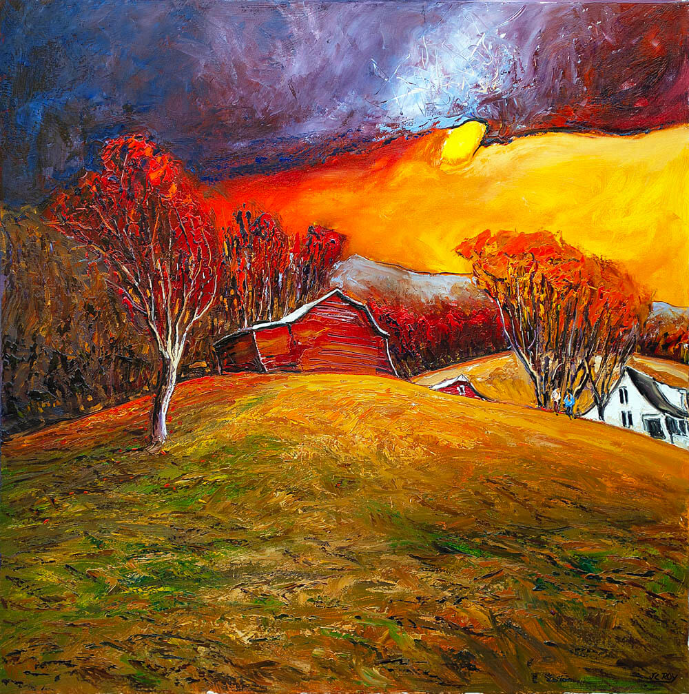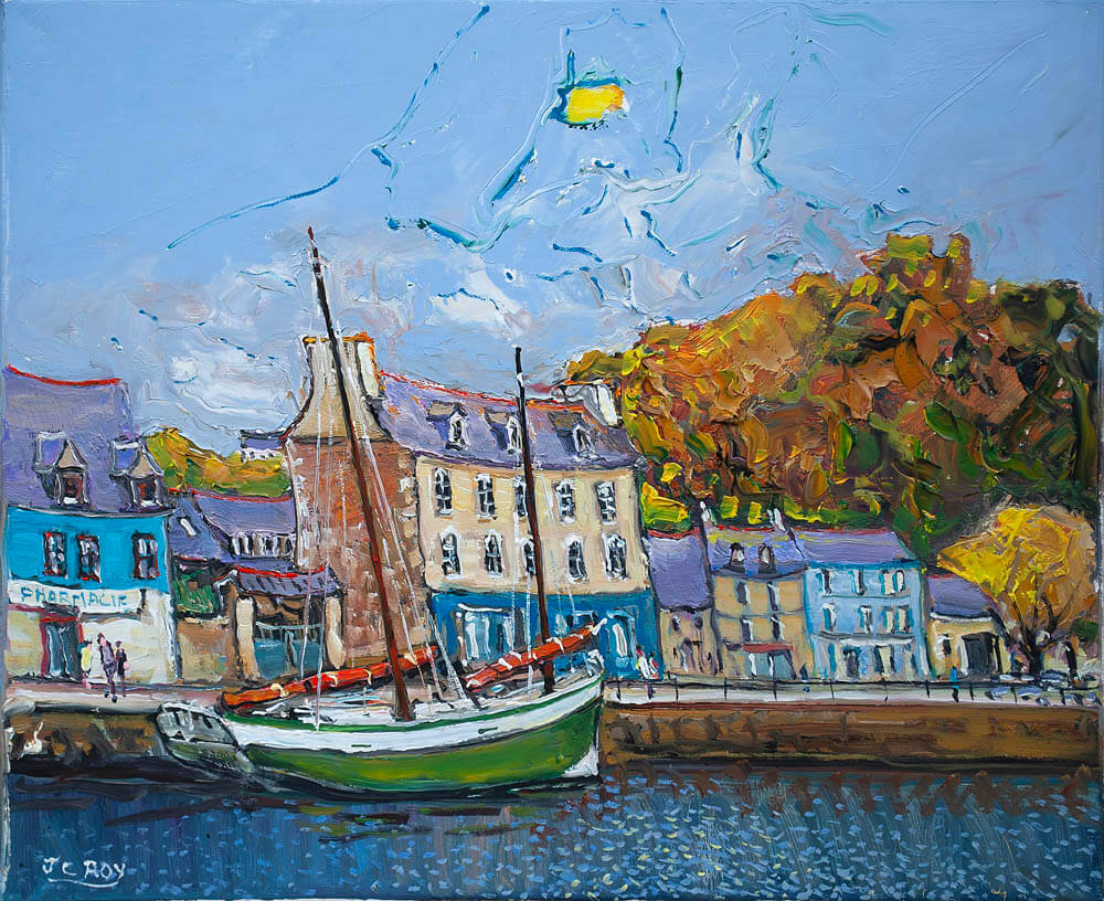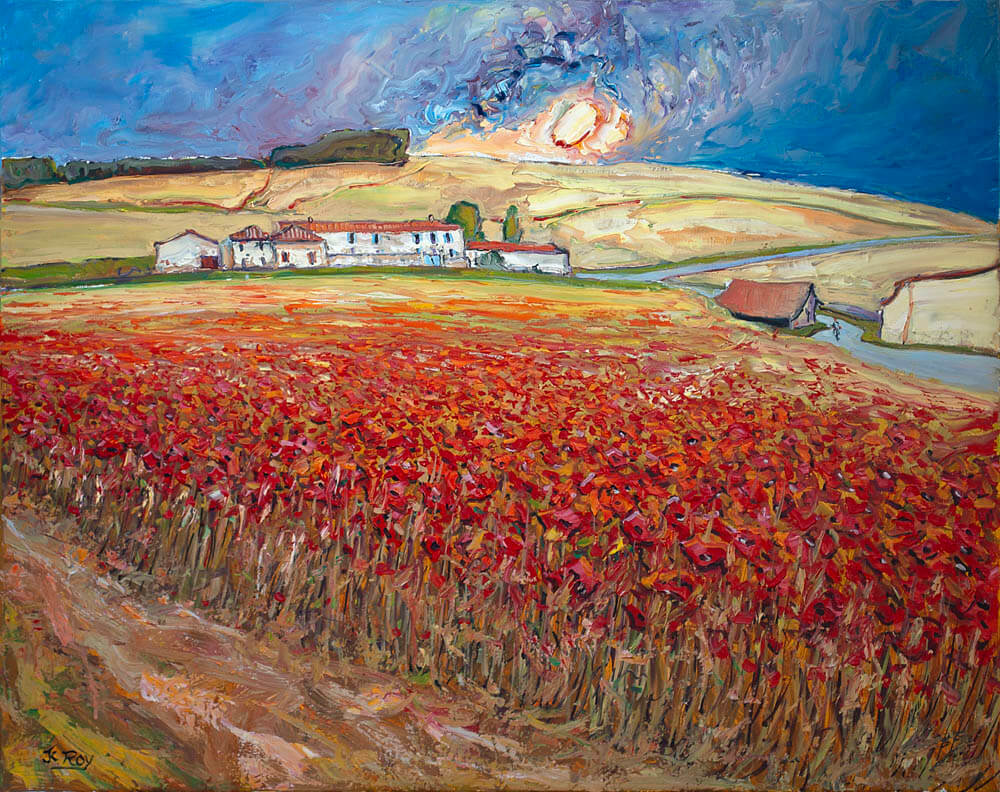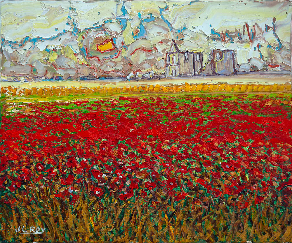 Jean Claude Roy, an "expressionist-colourist," paints primarily in oils with a palette knife. Since the late 1980s, his radiant landscapes have featured a signature sun — initially painted black — that became central to his compositions. For over 25 years, he has divided his time between France and Newfoundland, publishing two books, receiving the Order of Newfoundland and Labrador, and inspiring several award-winning documentaries. In 2002, Roy met Richard Kessler, and since then his work has been proudly represented in the United States by Kessler Collection galleries.