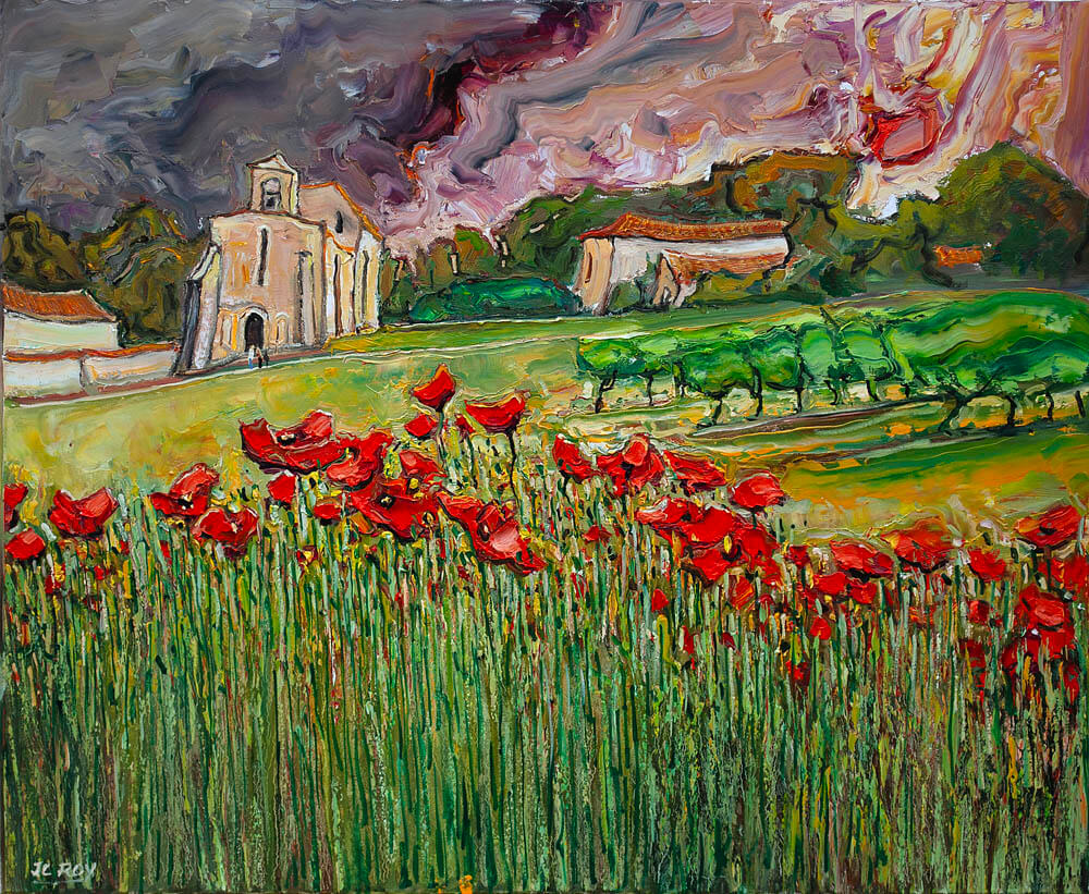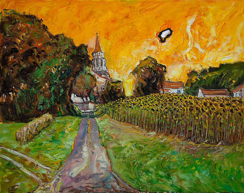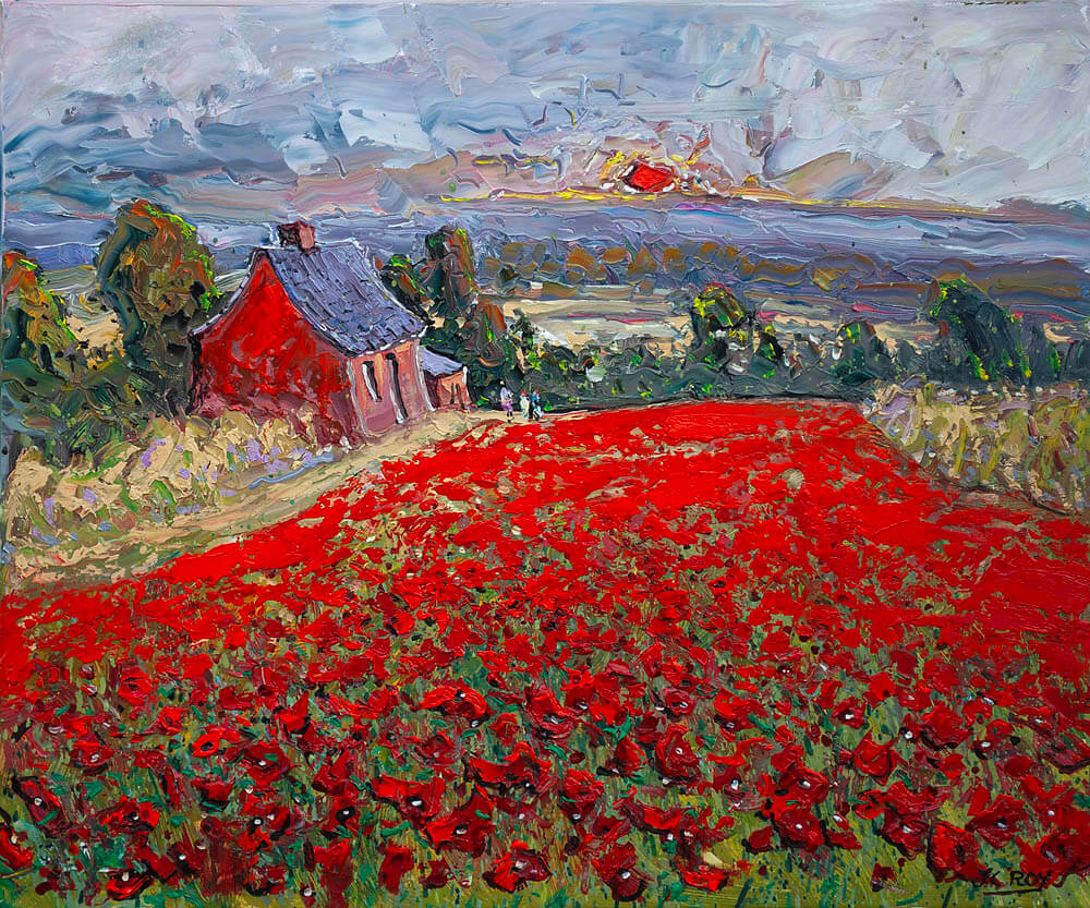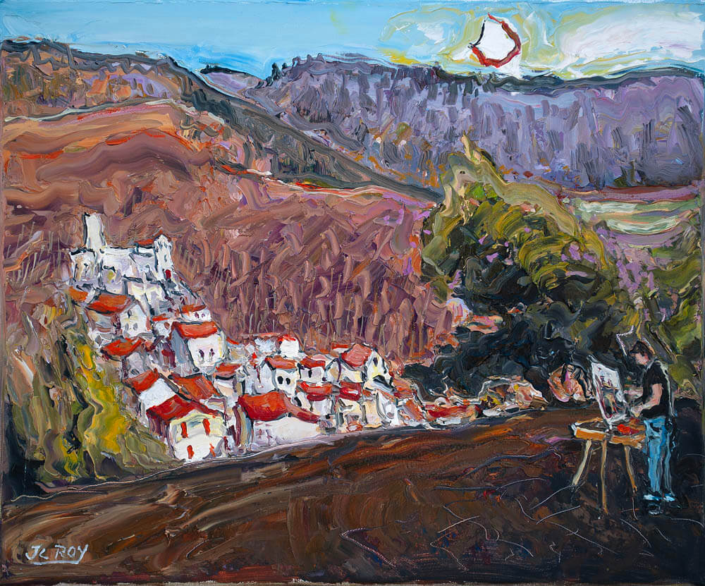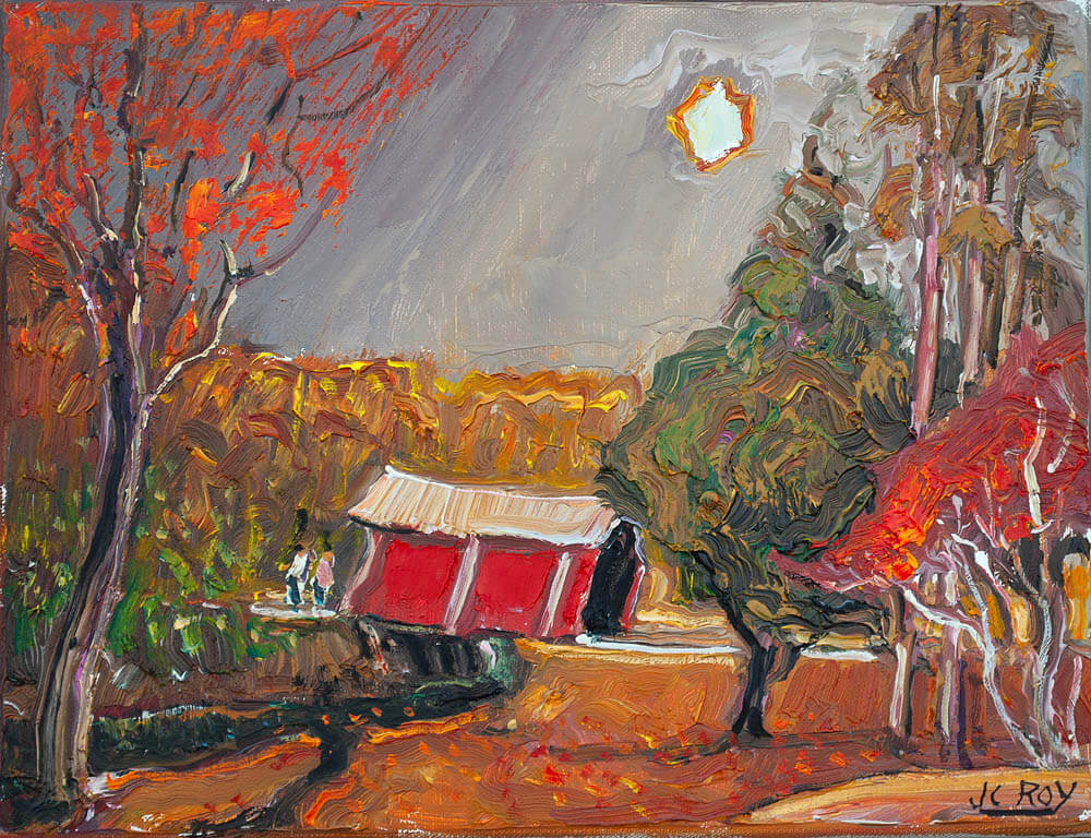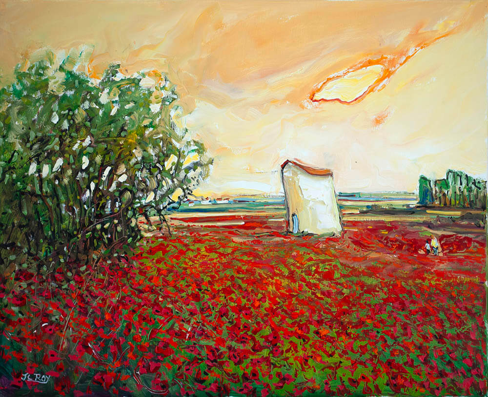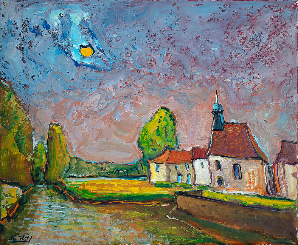 Jean Claude Roy, an "expressionist-colourist," paints primarily in oils with a palette knife. Since the late 1980s, his radiant landscapes have featured a signature sun — initially painted black — that became central to his compositions. For over 25 years, he has divided his time between France and Newfoundland, publishing two books, receiving the Order of Newfoundland and Labrador, and inspiring several award-winning documentaries. In 2002, Roy met Richard Kessler, and since then his work has been proudly represented in the United States by Kessler Collection galleries.