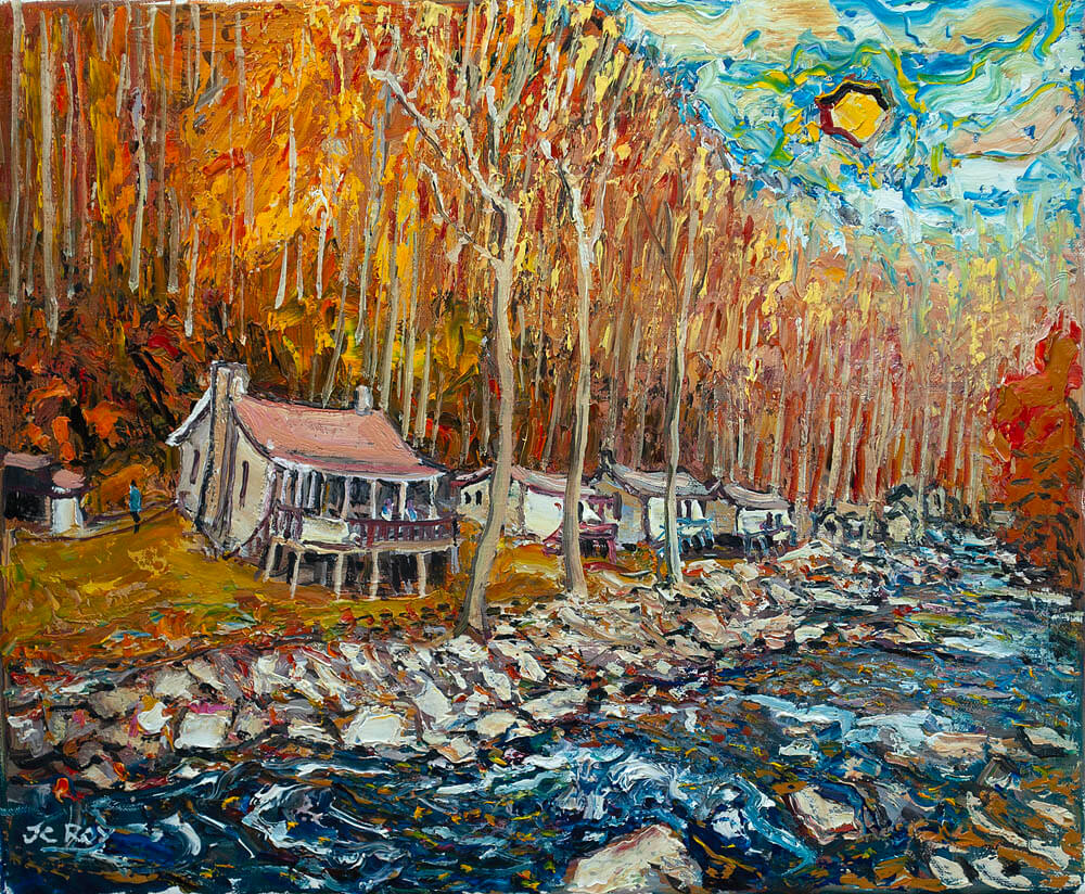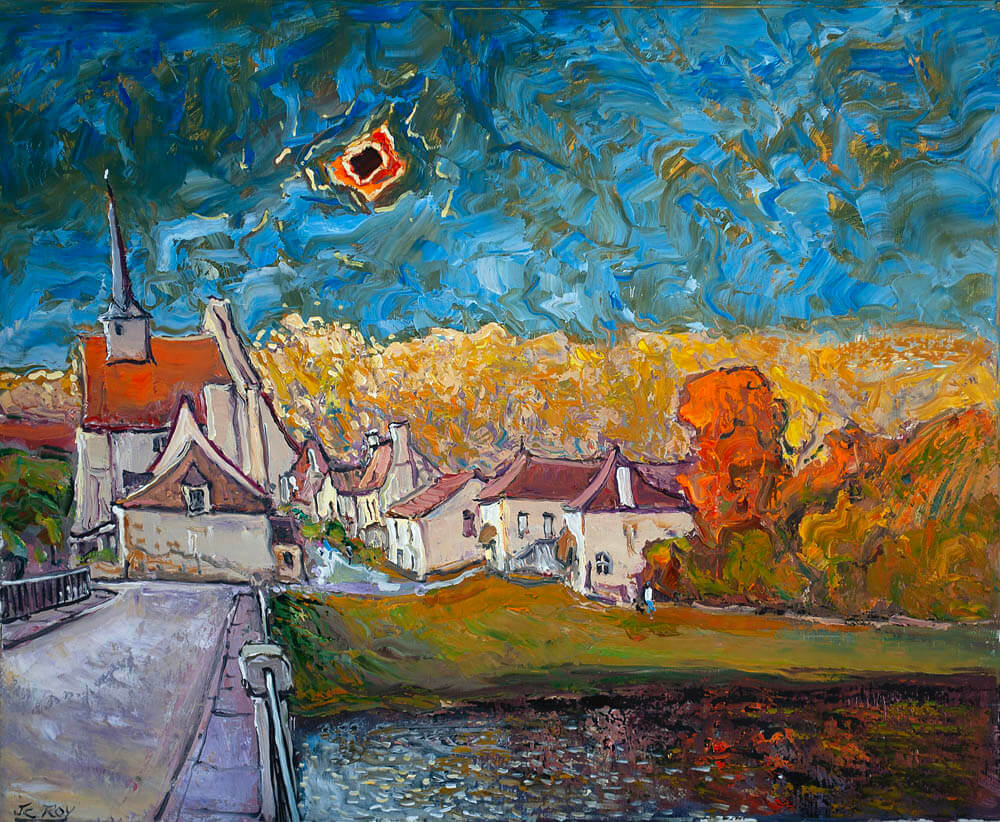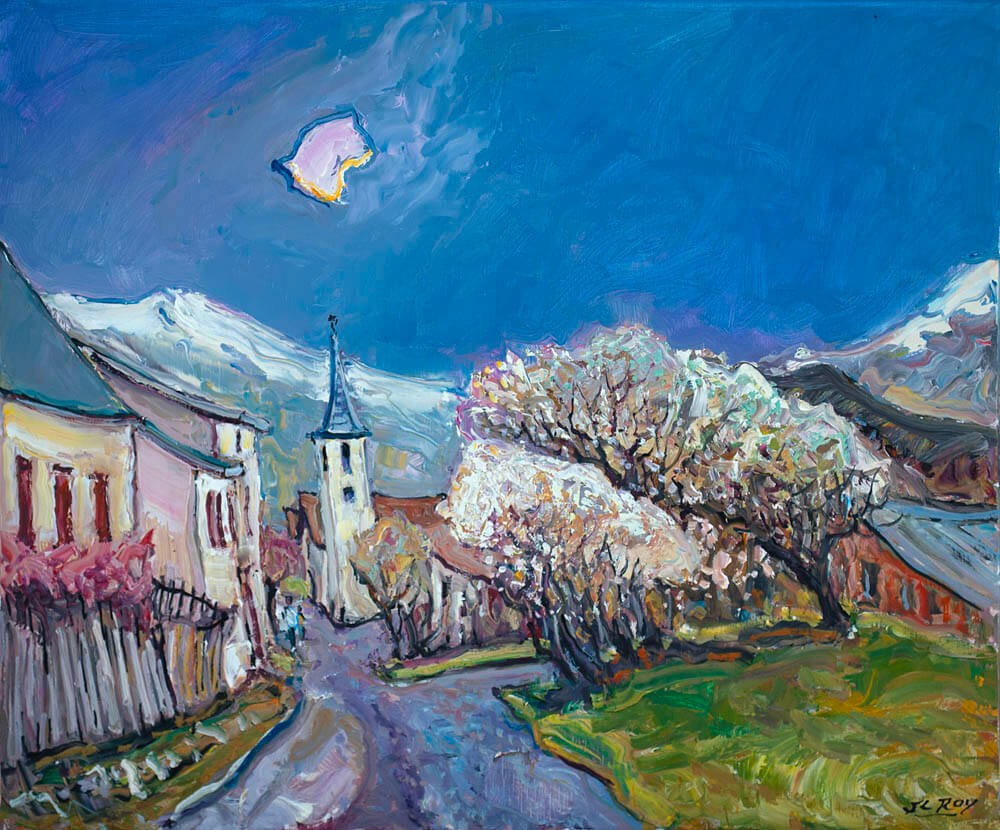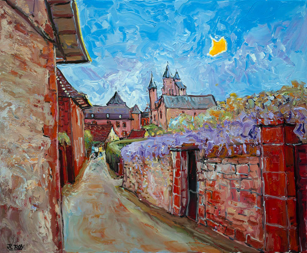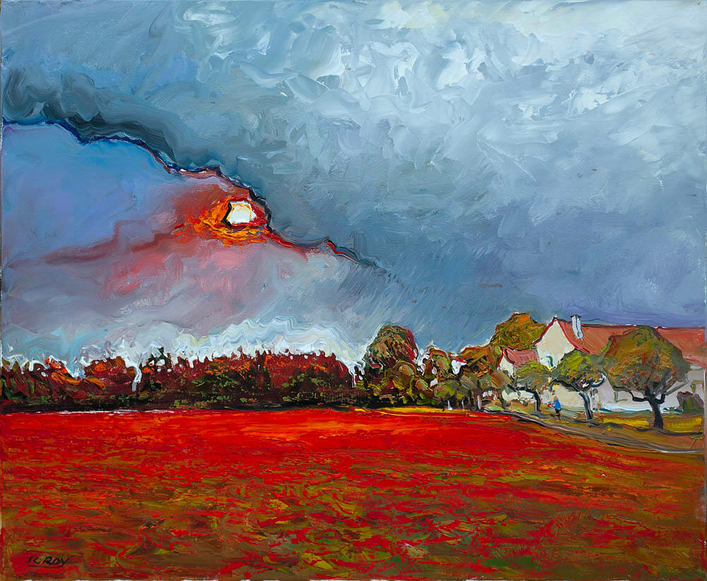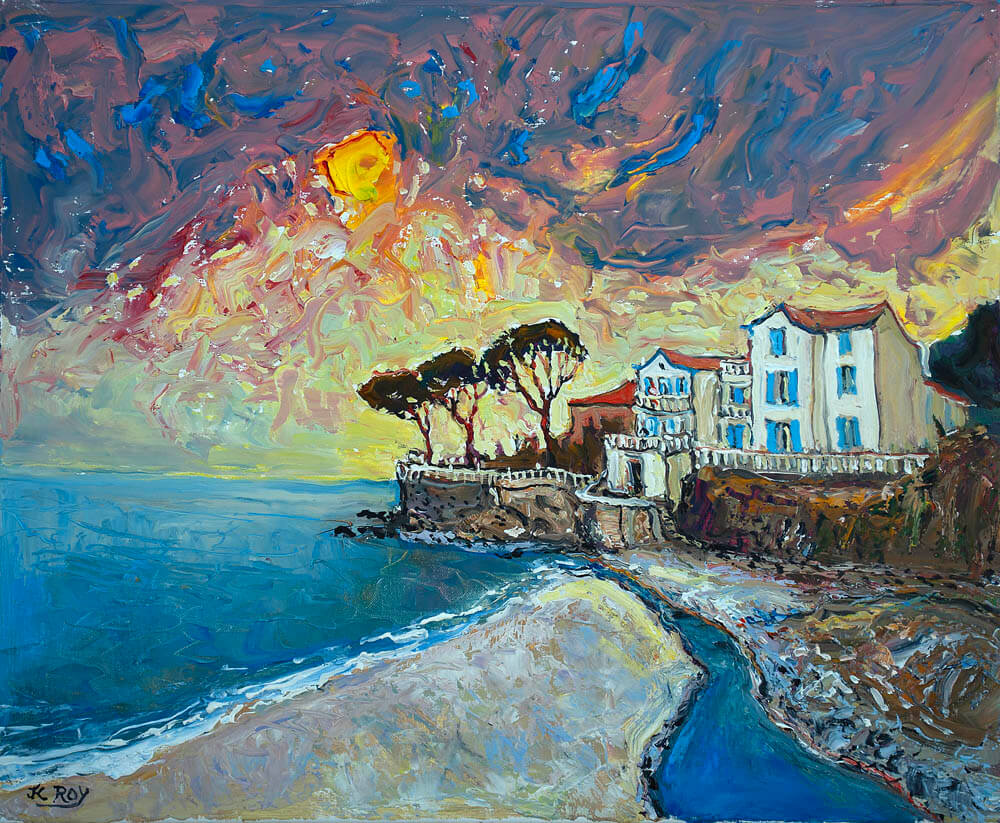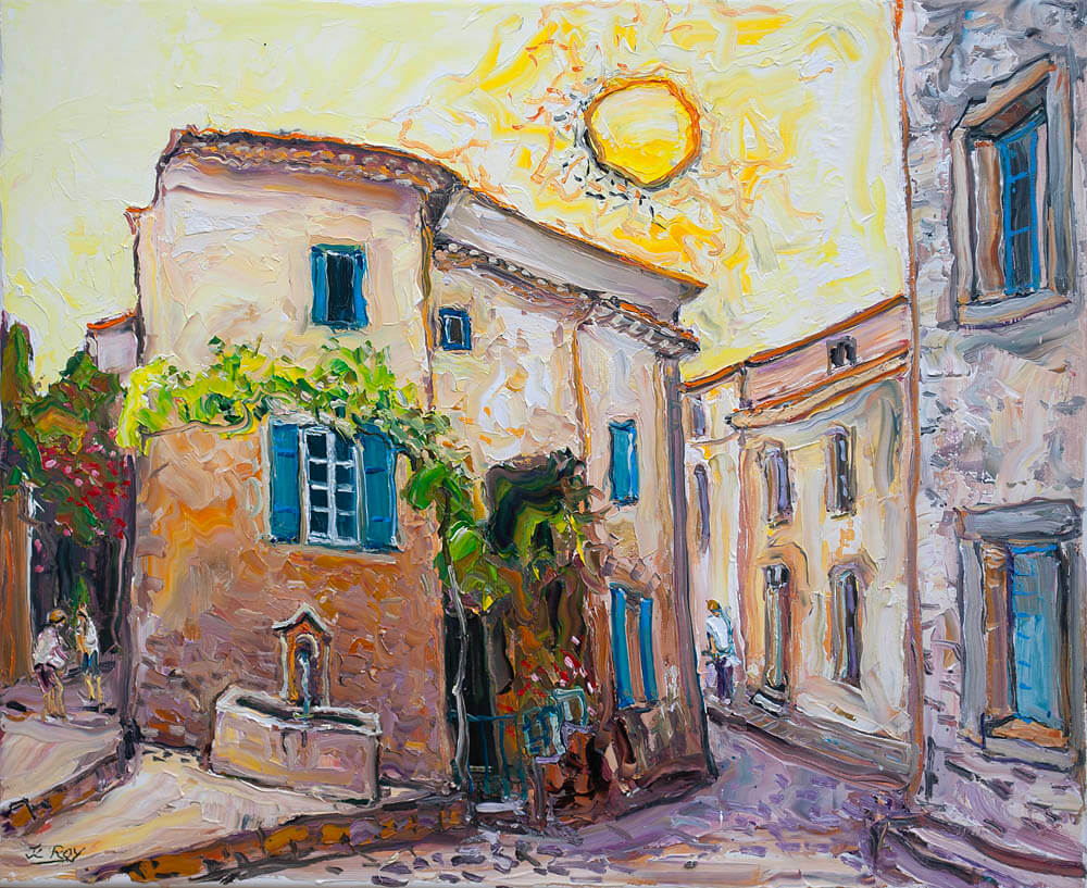 Jean Claude Roy, an "expressionist-colourist," paints primarily in oils with a palette knife. Since the late 1980s, his radiant landscapes have featured a signature sun — initially painted black — that became central to his compositions. For over 25 years, he has divided his time between France and Newfoundland, publishing two books, receiving the Order of Newfoundland and Labrador, and inspiring several award-winning documentaries. In 2002, Roy met Richard Kessler, and since then his work has been proudly represented in the United States by Kessler Collection galleries.