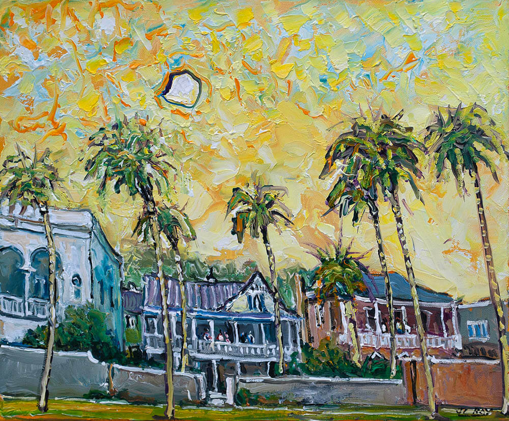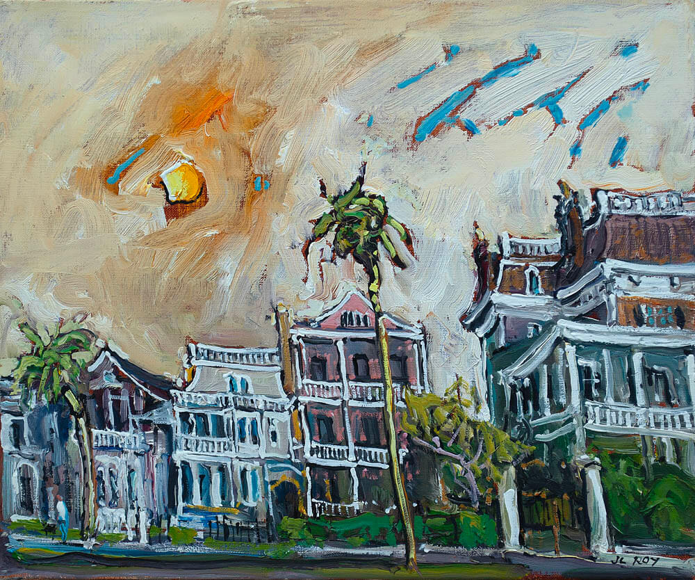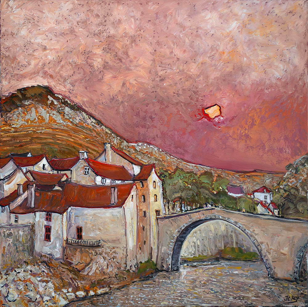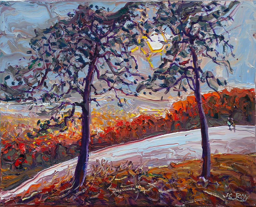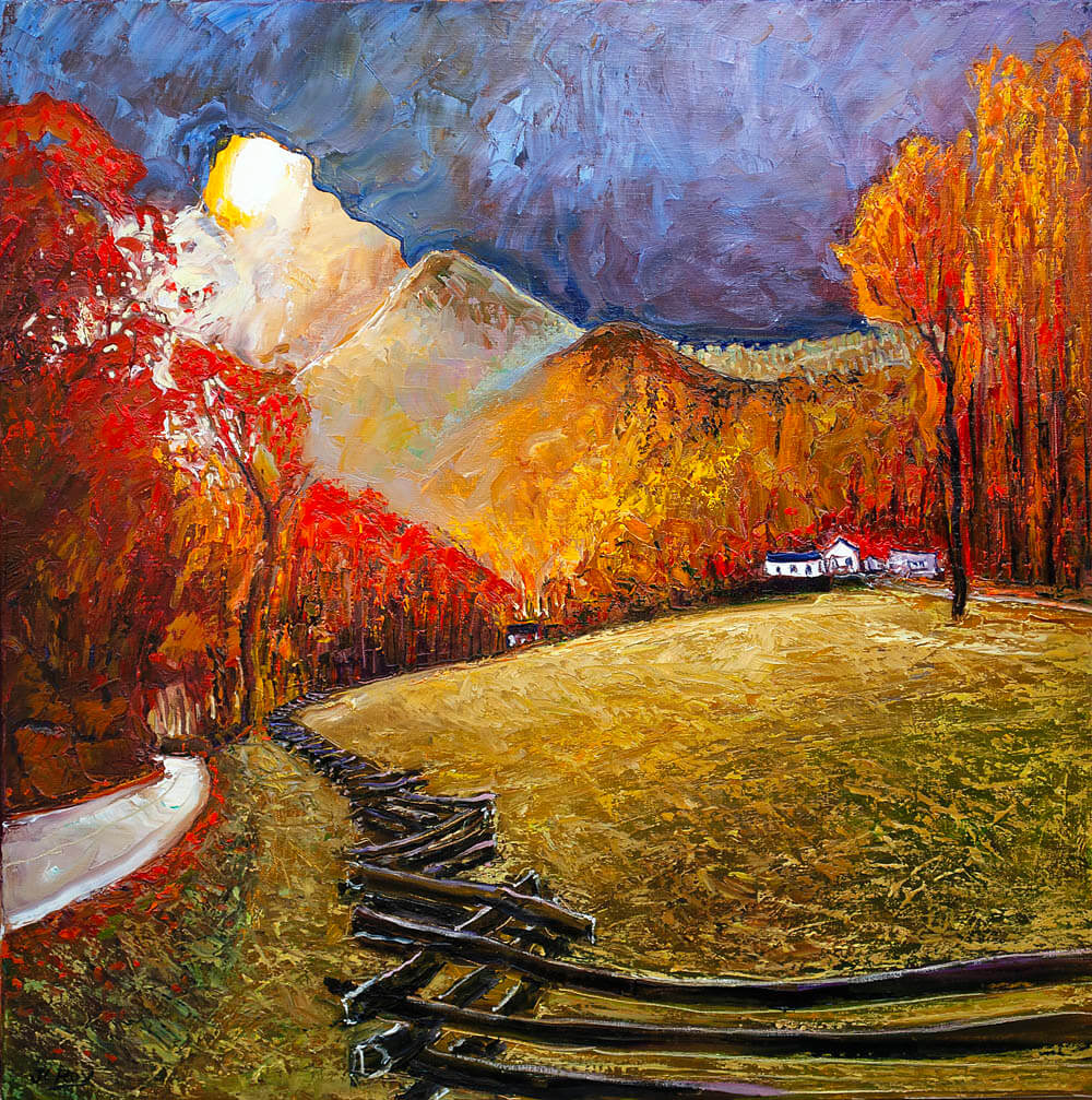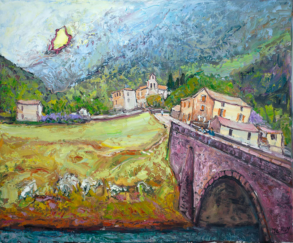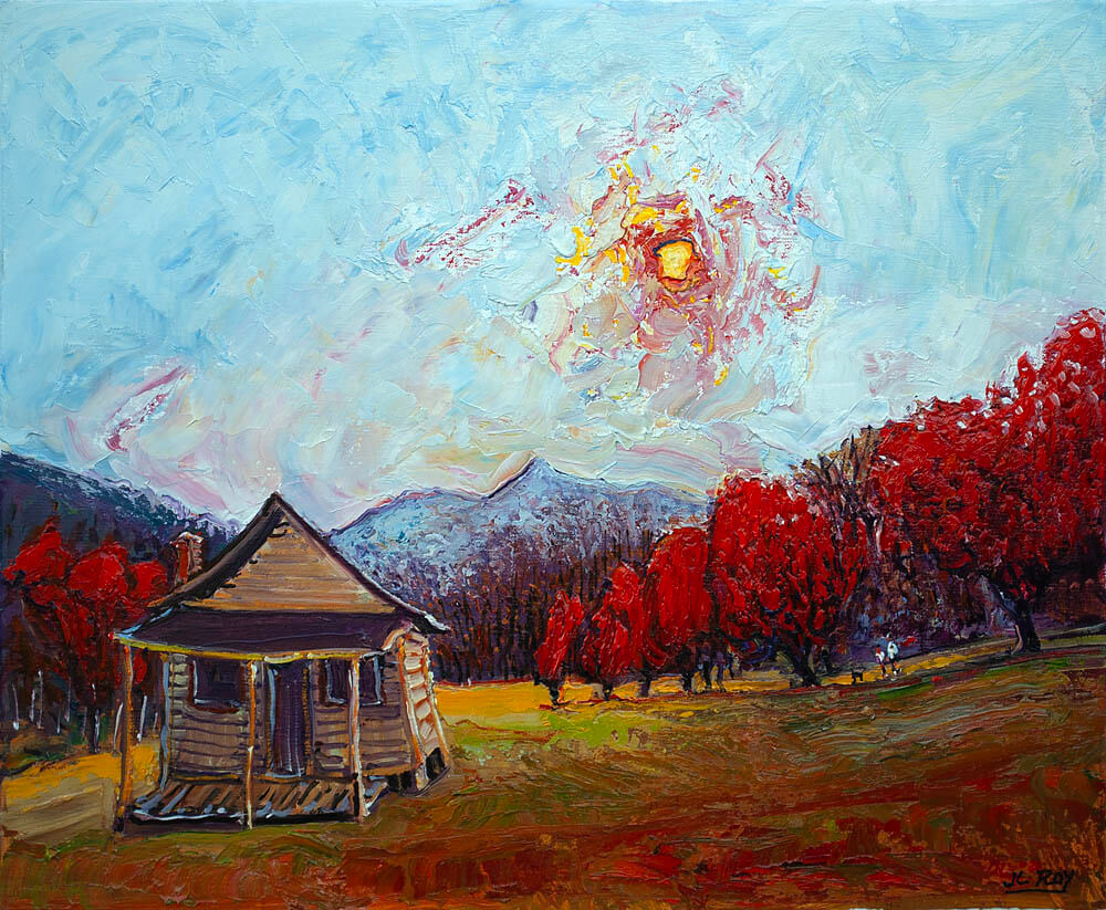 Jean Claude Roy, an "expressionist-colourist," paints primarily in oils with a palette knife. Since the late 1980s, his radiant landscapes have featured a signature sun — initially painted black — that became central to his compositions. For over 25 years, he has divided his time between France and Newfoundland, publishing two books, receiving the Order of Newfoundland and Labrador, and inspiring several award-winning documentaries. In 2002, Roy met Richard Kessler, and since then his work has been proudly represented in the United States by Kessler Collection galleries.