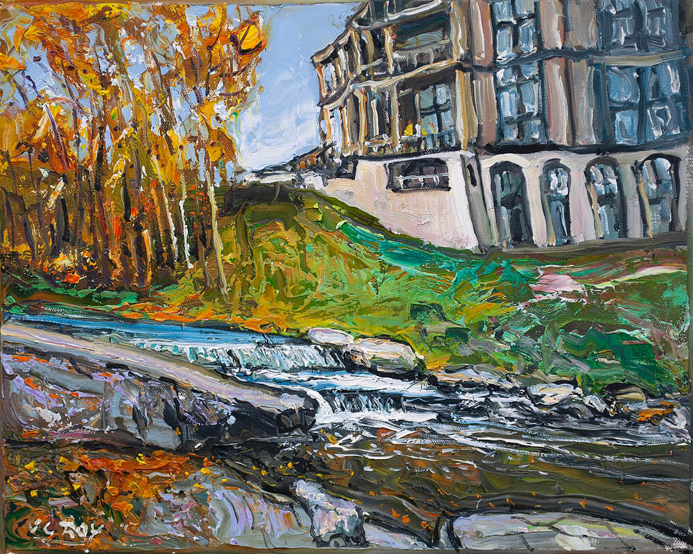 At the age of 16, after technical lycee, he attended merchant marine training and took his first job at 17 as an apprentice electrician on a cable-repair boat. There followed several years at sea, with much time spent in the port of St. John's, Newfoundland where his interest in art turned to landscape. In 1971, he emigrated to Newfoundland and for the next ten years worked as a marine electrician by day and an artist by night. He attended art classes for a total of two sessions, because he didn't like being told what to do. By 1973, he was selling in local galleries and he had his first solo exhibition in 1974. There followed two one-man shows at the provincial art gallery and representation in galleries in other parts of Canada. In 1982, he returned to France; he was eager to make a career as an artist in his own country and to try to live from his art alone. There followed several relatively difficult years during which he rebuilt the stone farmhouse in which he had grown up, cultivated his garden and orchard, and painted during every spare minute. He supplemented his income by giving lessons (but never told people what to do) and offering painting holidays to Canadian visitors. He maintained his ties with Newfoundland however, and in 1994 he established a second studio near St. John's. He now divides his time between the two countries.