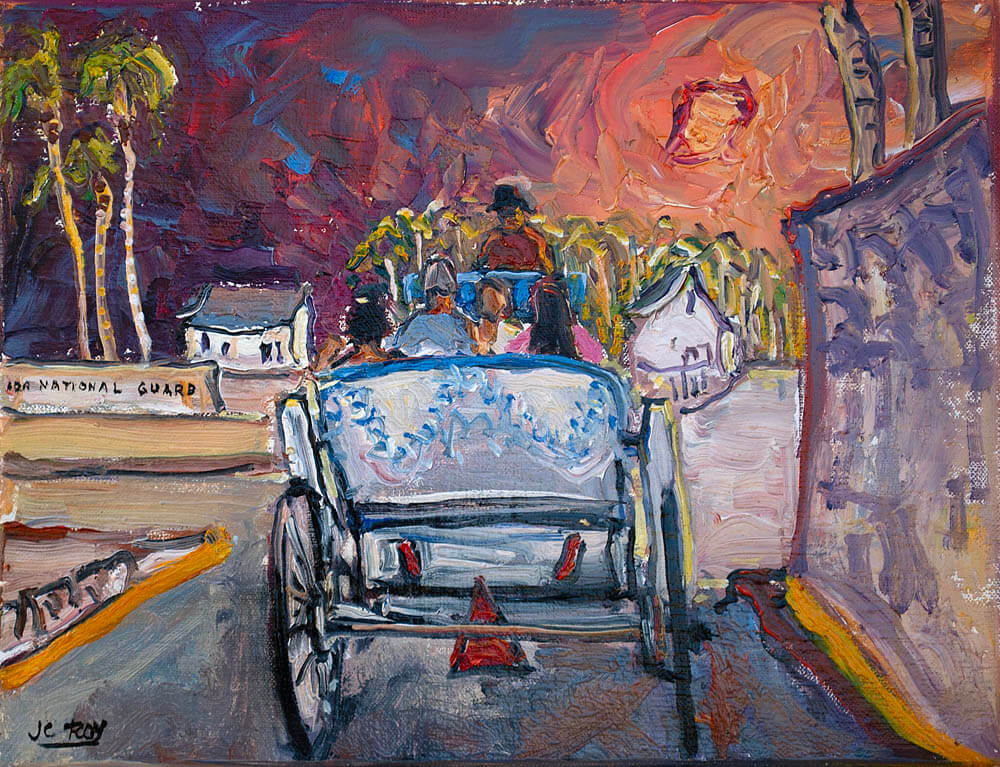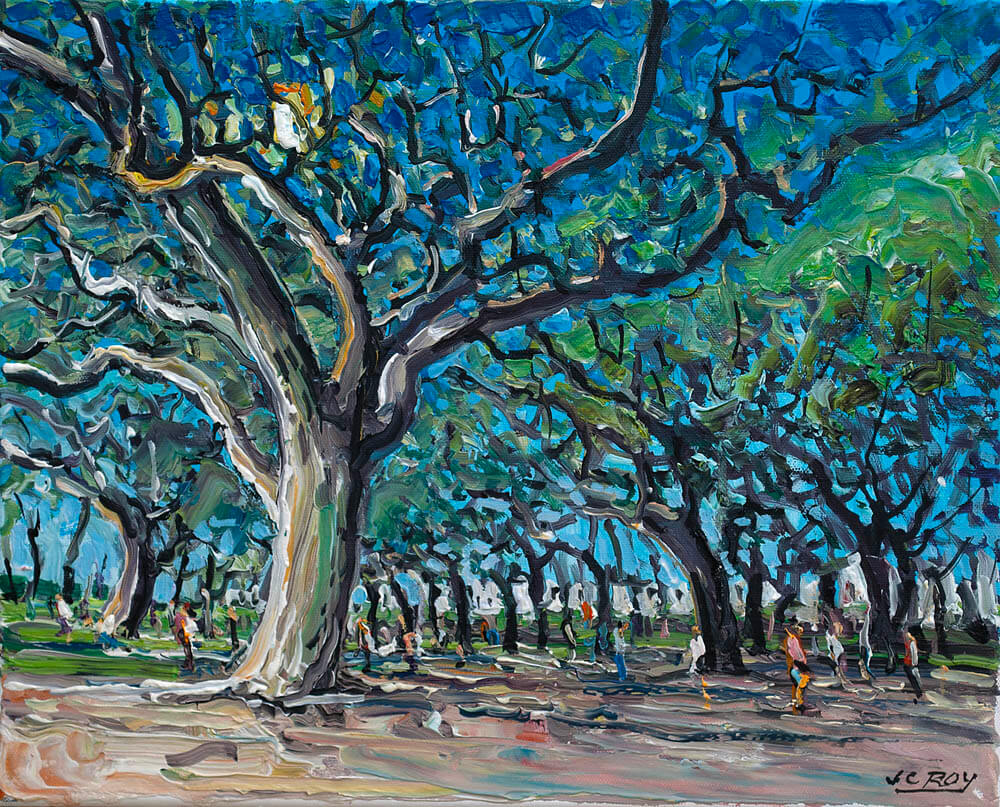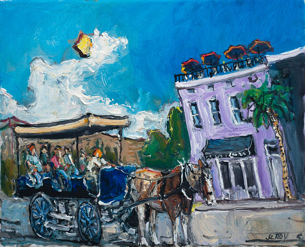 Jean Claude Roy was born in Rochefort-sur-Mer on the west coast of France in 1948. He knew from the age of seven that he wanted to be an artist, and was encouraged by his grandfather, a farmer of modest means who occasionally bought paintings at auctions. Jean Claude recalls attending early-morning produce markets with his grandparents and making his first "sculptures" from the colored paper used to wrap apples and oranges.